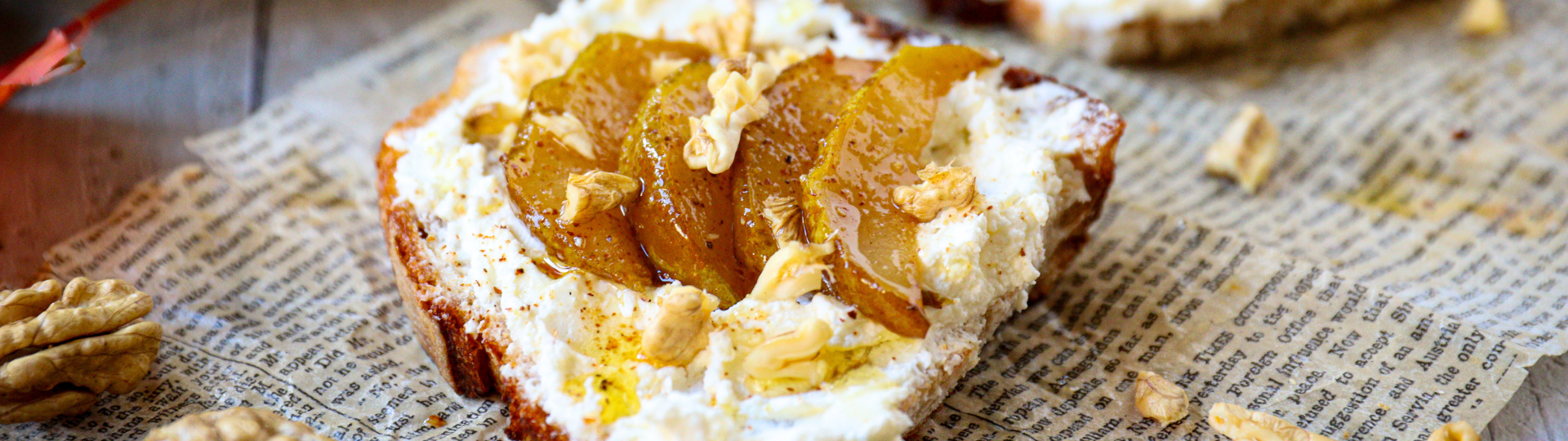Opečený chléb s čerstvým kozím sýrem, karamelizovanými hruškami, medem a ořechy Posted on 9. 1. 20269. 1. 2026 1920 × 540