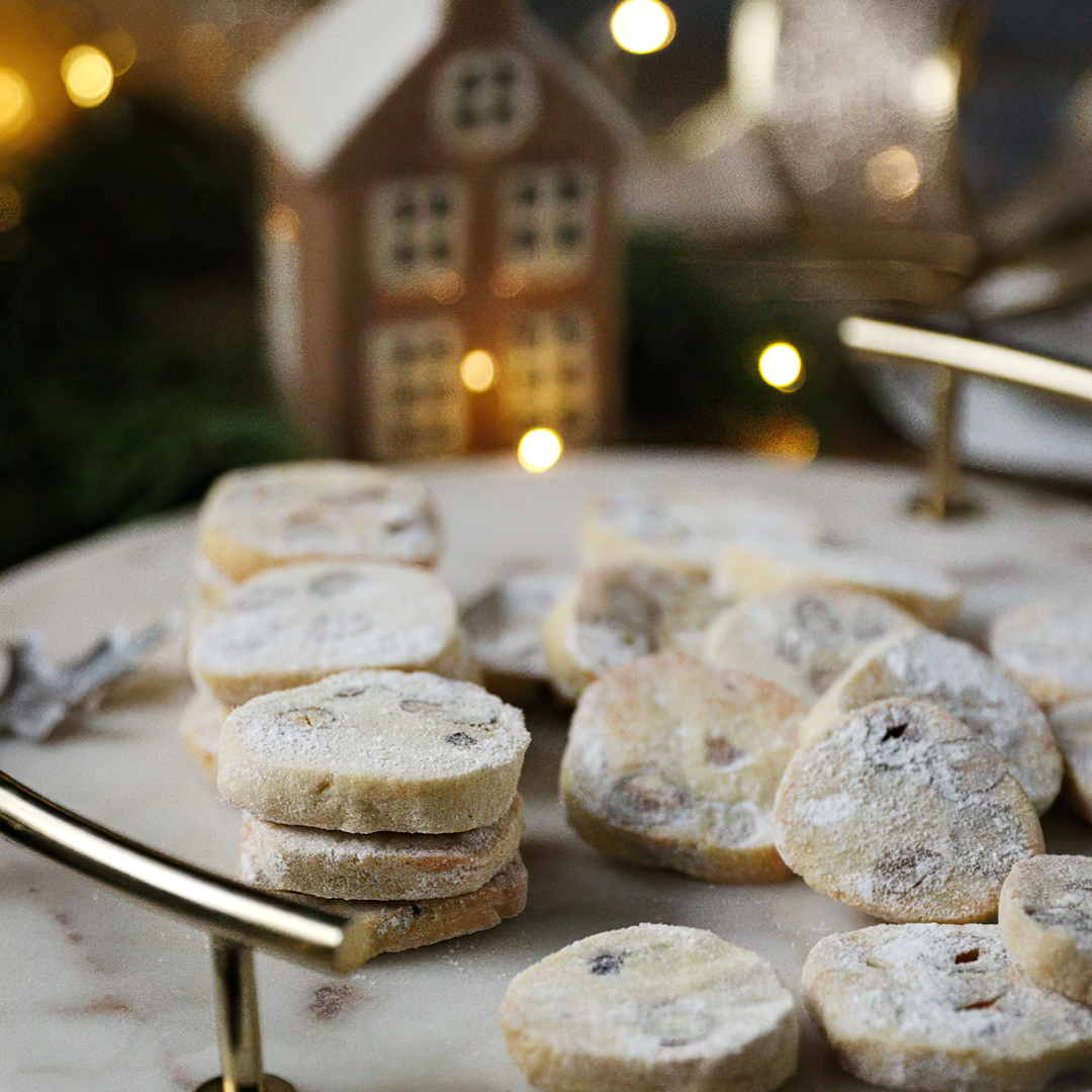 5. Nakrájené plátky vyskládáme na plech vyložený pečicím papírem a pečeme v předehřáté troubě na 180°C asi 10 minut, aby získaly lehce narůžovělou barvu. Ještě teplá kolečka obalujeme v moučkovém cukru.